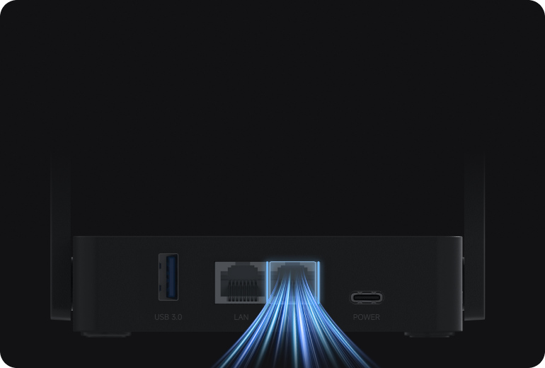 USB 3.0接口理论传输速率5Gbps,插入U盘/移动硬盘即变轻NAS,手机/电脑直连管理文件